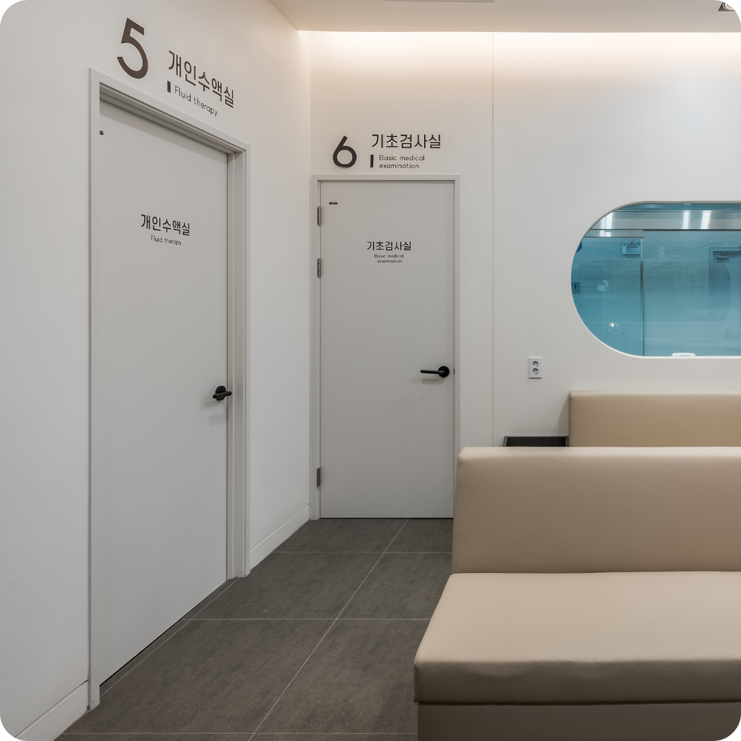 구리백내과는 종합검진센터로서, 환자들에게 쾌적하고 편안한 환경을 제공하기 위해 설계된 공간입니다. 화이트+우드 포인트 컬러를 활용하여 따뜻하고 청결한 이미지를 구현했으며, 환자들이 심리적으로 안정감을 느낄 수 있도록 디자인되었습니다.